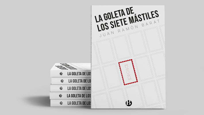 Editorial design of "La Goleta de los Siete Mástiles" book cover for the publishing house Bruno, whose plot takes place around a treasured collection of stamps, one of which of incalculable value with lots of blood spilled in between, is the one that gives name to the novel.